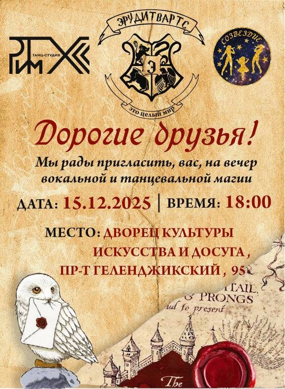 ПОСВЯЩЕНИЕ В АРТИСТЫ ❤️ Дорогие друзья, рады пригласить Вас на торжественный праздник для самых маленьких танцоров и вокалистов наших студий! Для них - это отправная точка, первый выход на большую сцену, начало большого и абсолютно особенного пути! Нас ждет вечер вокальной и танцевальной магии! ❤️ 15 декабря, 18:00, Дворец Культуры города Вход свободный! Приходите окунуться в атмосферу искусства и вдохновения!