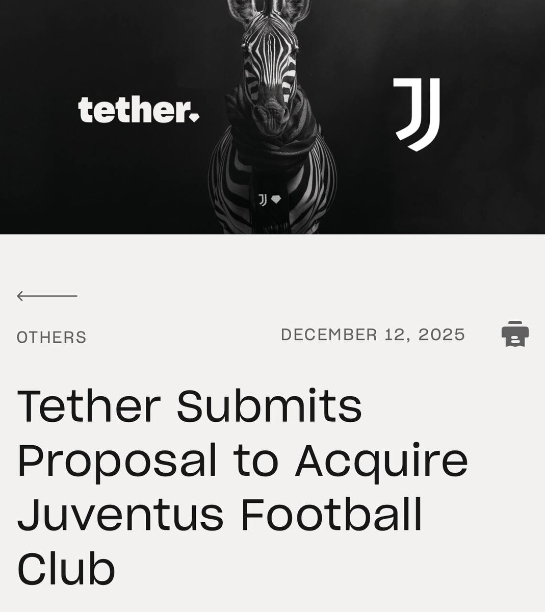 🇮🇹 Создатели USDT собираются купить футбольный клуб Компания Tether сделала предложение о покупке итальянского «Ювентуса». Гендир Tether — большой фанат клуба и планирует вложить в него €1 млрд. Решили токенизировать «Ювентус».