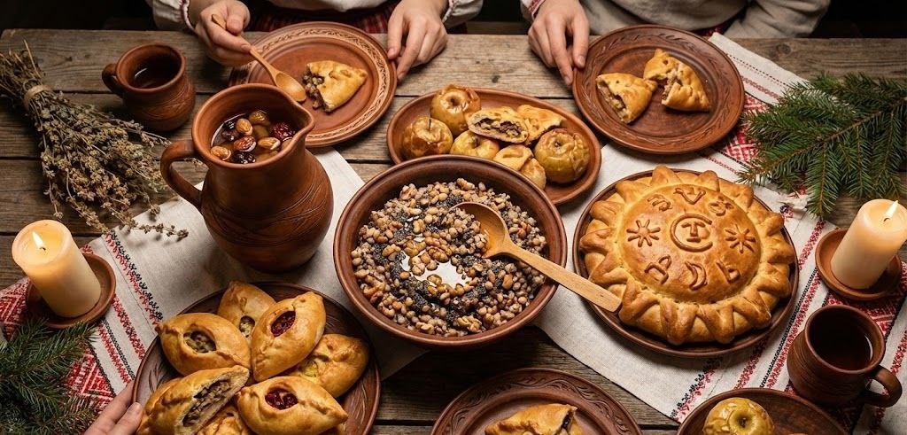 Праздничный стол предков: что ели на Коляду? 🍲🥧 Пир в ночь Коляды — это не просто угощение. Это сакральная трапеза, где каждое блюдо имело глубокий смысл. Главное блюдо — Кутья (варёные зёрна с мёдом). Зёрна — символ жизни, мёд — сладость и благополучие. ▪️Взвар (компот из сушёных фруктов) — напиток здоровья и изобилия. ▪️Пироги и караваи — символ солнца и завершённого цикла. ▪️Постные блюда (до 6 января идёт пост) — очищение перед новым циклом. Давайте соберём нашу народную кулинарную книгу! Делитесь в комментариях рецептами ваших семейных праздничных блюд — будь то кутья, пироги или особое рождественское печенье. 🍯 #Кутья #ПраздничныйСтол #ТрадиционнаяКухня #Коляда