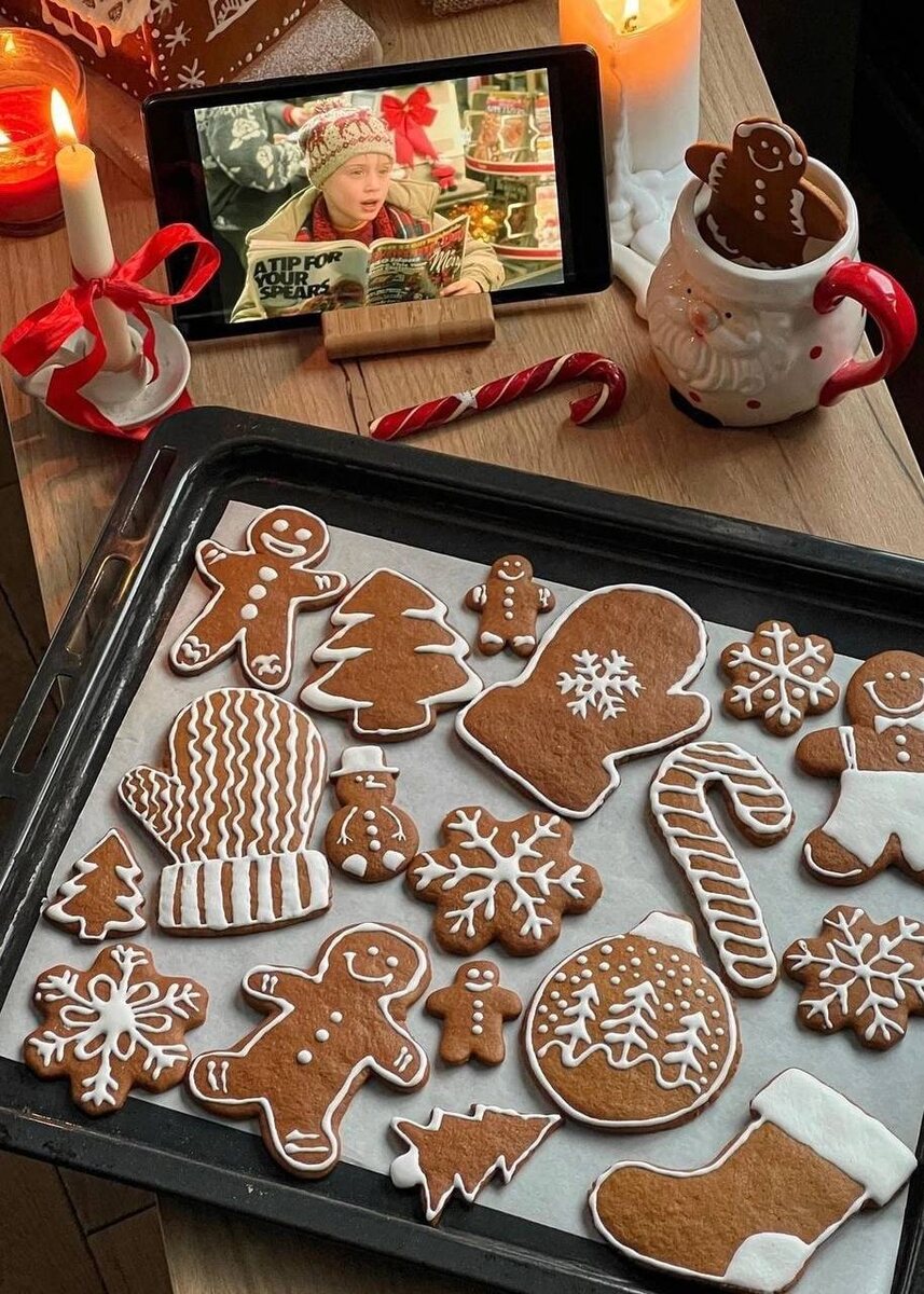 Марафон новогодних рецептов объявляем открытым ➖🍪 Давайте сегодня вместе приготовим имбирное печенье, и обязательно зовите родных — с ними готовить гораздо веселее! Ингредиенты: Сливочное масло - 110 г Яйцо - 1 шт Мёд - 210 г Корица и имбирь по 1 ч. л Мука - 430 г Соль - 1 щепотка Разрыхлитель - 1.5 ч. л 1. В кастрюле смешать мёд, корицу, имбирь и соль. Помешивая, доводим до кипения и снимаем с огня. Добавляем разрыхлитель и активно перемешиваем. 2. Добавляем сливочное масло и перемешиваем до растворения. Остудить. 3. Добавить яйцо, перемешать. 4. Добавить просеянную муку и замесить крутое эластичное тесто. С ним приятно работать, оно не липнет к рукам. 5. Раскатываем пласт толщиной ~7мм и вырезаем формочками печенья. Выпекаем в заранее разогретой до 180°C духовке 10 минут. Печеньки получаются очень ароматными и долго хранятся. Приятного аппетита!