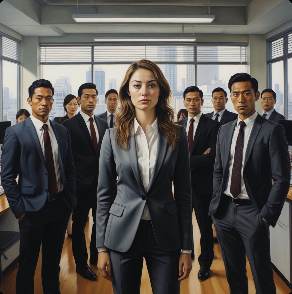 ΠΠ»Π°Π²Π½Π°Ρ Π³Π΅ΡΠΎΠΈΠ½Ρ, ΠΠΌΠ΅Π»ΠΈ, ΠΏΡΠΈΠ΅Π·ΠΆΠ°Π΅Ρ ΡΠ°Π±ΠΎΡΠ°ΡΡ Π² ΠΊΡΡΠΏΠ½ΡΡ ΡΠΏΠΎΠ½ΡΠΊΡΡ ΠΊΠΎΠΌΠΏΠ°Π½ΠΈΡ. ΠΠ½Π° ΡΡΠ°Π»ΠΊΠΈΠ²Π°Π΅ΡΡΡ Ρ ΠΆΡΡΡΠΊΠΎΠΉ ΠΊΠΎΡΠΏΠΎΡΠ°ΡΠΈΠ²Π½ΠΎΠΉ Π΄ΠΈΡΡΠΈΠΏΠ»ΠΈΠ½ΠΎΠΉ, ΡΠ»ΠΎΠΆΠ½ΠΎΠΉ ΠΈΠ΅ΡΠ°ΡΡ ΠΈΠ΅ΠΉ ΠΈ Π½Π΅ΠΏΠΎΠ½ΡΡΠ½ΡΠΌΠΈ Π΄Π»Ρ Π½Π΅Ρ Π½ΠΎΡΠΌΠ°ΠΌΠΈ ΠΏΠΎΠ²Π΅Π΄Π΅Π½ΠΈΡ. Π§Π΅ΡΠ΅Π· ΠΊΠΎΠΌΠΈΡΠ½ΡΠ΅ ΠΈ Π΄ΡΠ°ΠΌΠ°ΡΠΈΡΠ΅ΡΠΊΠΈΠ΅ ΡΠΈΡΡΠ°ΡΠΈΠΈ ΡΠΎΠΌΠ°Π½ ΠΏΠΎΠΊΠ°Π·ΡΠ²Π°Π΅Ρ ΠΊΡΠ»ΡΡΡΡΠ½ΡΠΉ ΡΠΎΠΊ, Π½Π°ΠΏΡΡΠΆΡΠ½Π½ΠΎΡΡΡ ΠΈ Π°Π±ΡΡΡΠ΄Π½ΠΎΡΡΡ Π½Π΅ΠΊΠΎΡΠΎΡΡΡ ΡΠΎΡΠΈΠ°Π»ΡΠ½ΡΡ ΠΏΡΠ°Π²ΠΈΠ».