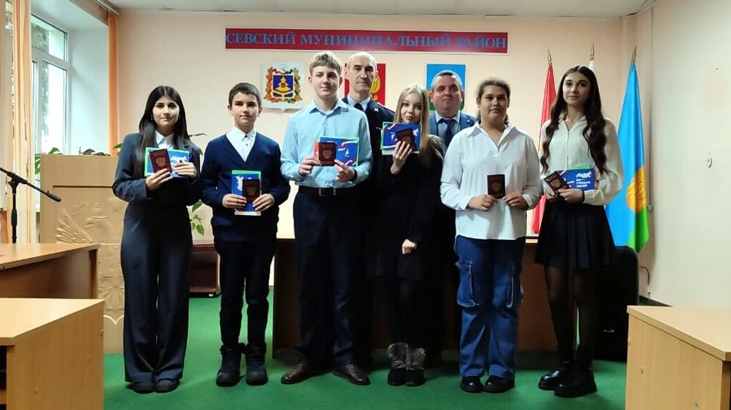 В администрации района вручили паспорта 14-летним юношам и девушкам. Ребята получили документы из рук главы администрации Михаила Большунов и начальник миграционного пункта МО МВД России «Севский» Сергея Фетисова. В День Конституции в Севске прошла акция «Мы — граждане России». В администрации района вручили паспорта 14-летним юношам и девушкам. Ребята получили документы из рук главы администрации Михаила Большунов и начальник миграционного пункта МО МВД России «Севский» Сергея Фетисова. Это значимое событие стало символом начала нового этапа в жизни школьников. Музыкальное поздравление исполнила солистка культурно-досугового центра Елена Качурина. Ранее сообщалось, что маме семерых сыновей из Злынковского района вручили сертификат на маткапитал. В День Конституции в Севске прошла акция «Мы — граждане России»