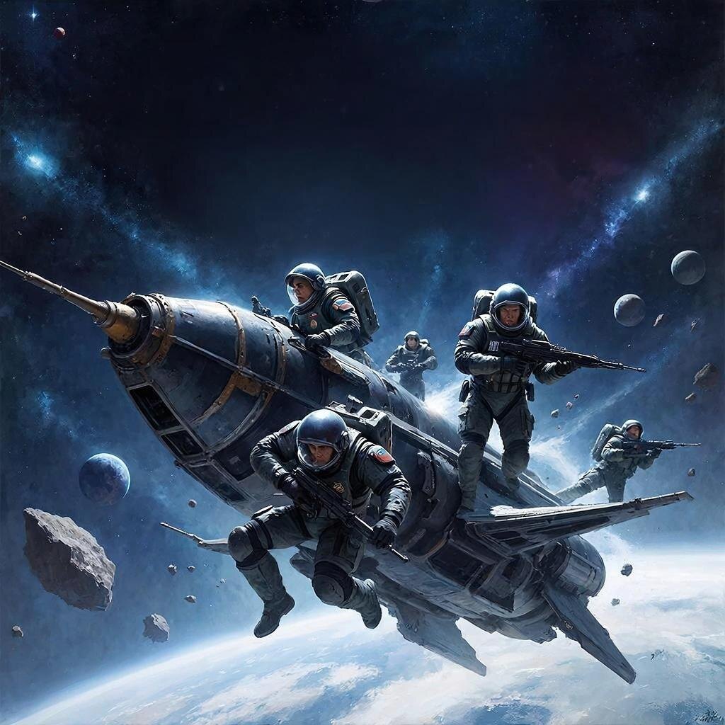 Глава первая. Начало пути Это было время великих открытий и приключений. Человечество давно освоило ближний космос, колонизировало Марс и Луну, отправляло экспедиции к далеким звездам. Но даже среди всего этого великолепия выделялась одна группа людей, чьи имена гремели на всю галактику — русские спецназовцы. Они были элитой среди элиты, лучшими из лучших. Их называли "космическими рыцарями", потому что именно они первыми вступали в бой там, куда никто больше не осмеливался идти. Они защищали границы человеческой цивилизации, боролись с пиратами и захватчиками, спасали заложников и выполняли самые опасные миссии. Их командир, полковник Александр Громов, был легендой. Его уважали и боялись одновременно. Он прошел десятки операций, каждая из которых была похожа на подвиг. Теперь перед ним стояла новая задача — спасти экипаж корабля, захваченного пиратской бандой. — Ребята, готовьтесь, — сказал он своим людям. — Операция начнется завтра утром. Мы должны освободить наших товарищей ж