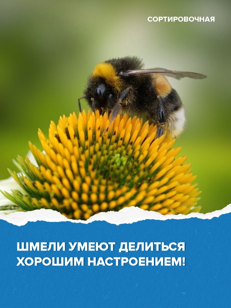 Шмели — не только неутомимые труженики, но и настоящие мастера передачи хорошего настроения! Всё началось с сахарного сиропа. Шмелю, который его получил, удавалось всего за 30 секунд общения передать своё радостное состояние сородичу, даже если тот награды не видел. «Заражённый» оптимизмом шмель начинал активнее исследовать незнакомые сигналы, ожидая чего-то приятного. 👀 Секрет в зрительном контакте: в темноте эффект пропадал. Учёные предполагают, что за этим может стоять дофамин — нейромедиатор, связанный с удовольствием и мотивацией. Вывод прост: даже у маленьких шмелей есть сложная социальная жизнь и своё «настроение». Иногда всё, что нужно для хорошего дня, — это увидеть счастливого друга. Станьте сегодня таким другом 🤍 Подписаться на Сортировочную👍