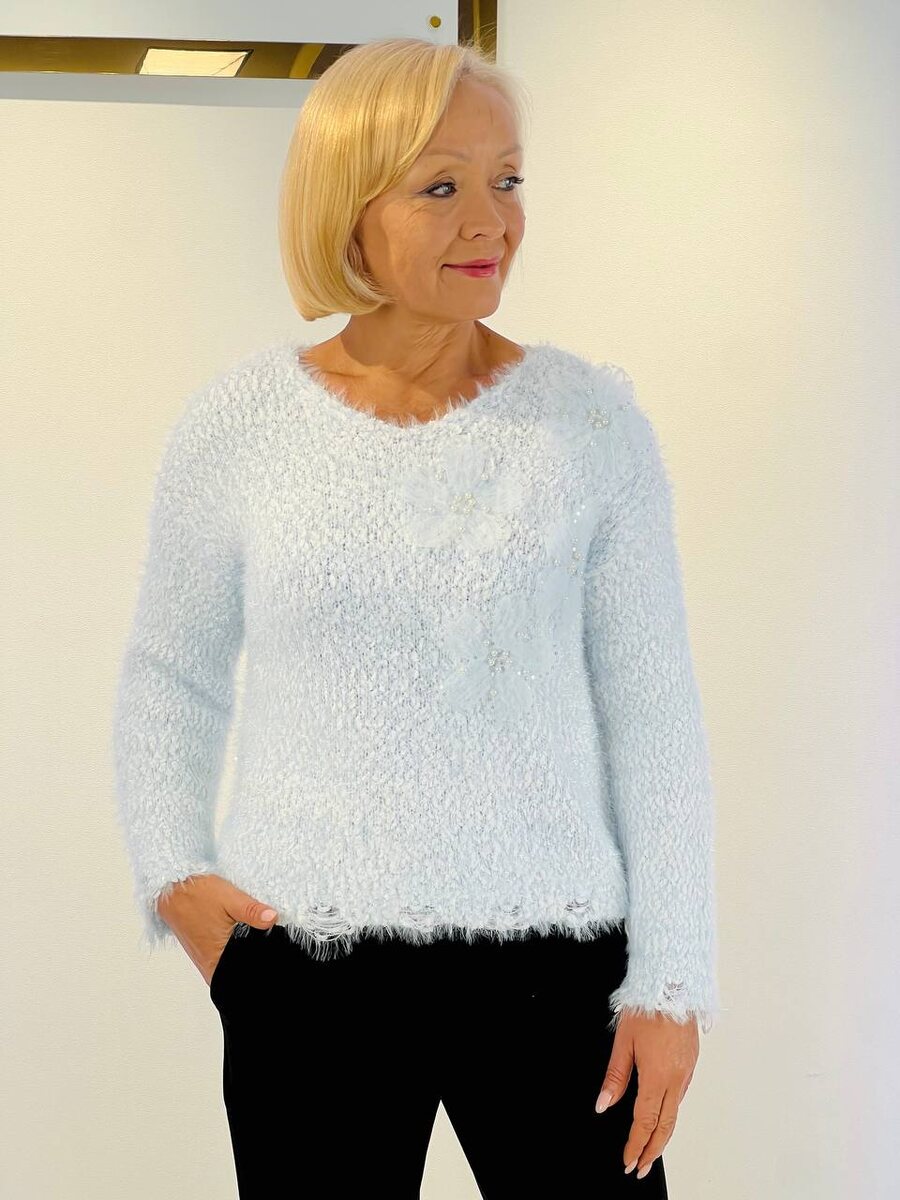 ✨ Нежная новинка для уютных и нарядных образов ✨ Артикул: 218 Размеры: 44–52 Цена: 1950 ₽ Очаровательный джемпер с мягкой пушистой текстурой и изящным декором в виде цветов 🌸 Модель смотрится очень нежно и женственно, при этом отлично согревает и дарит комфорт. Преимущества модели: • 🤍 Мягкая, приятная к телу фактура • 🌸 Декоративные цветы с бусинами — нежный акцент • 👗 Свободный крой — красиво садится по фигуре • ✨ Универсальная длина, удобно сочетать с брюками и юбками Идеален для повседневных образов, встреч и праздников 🎀