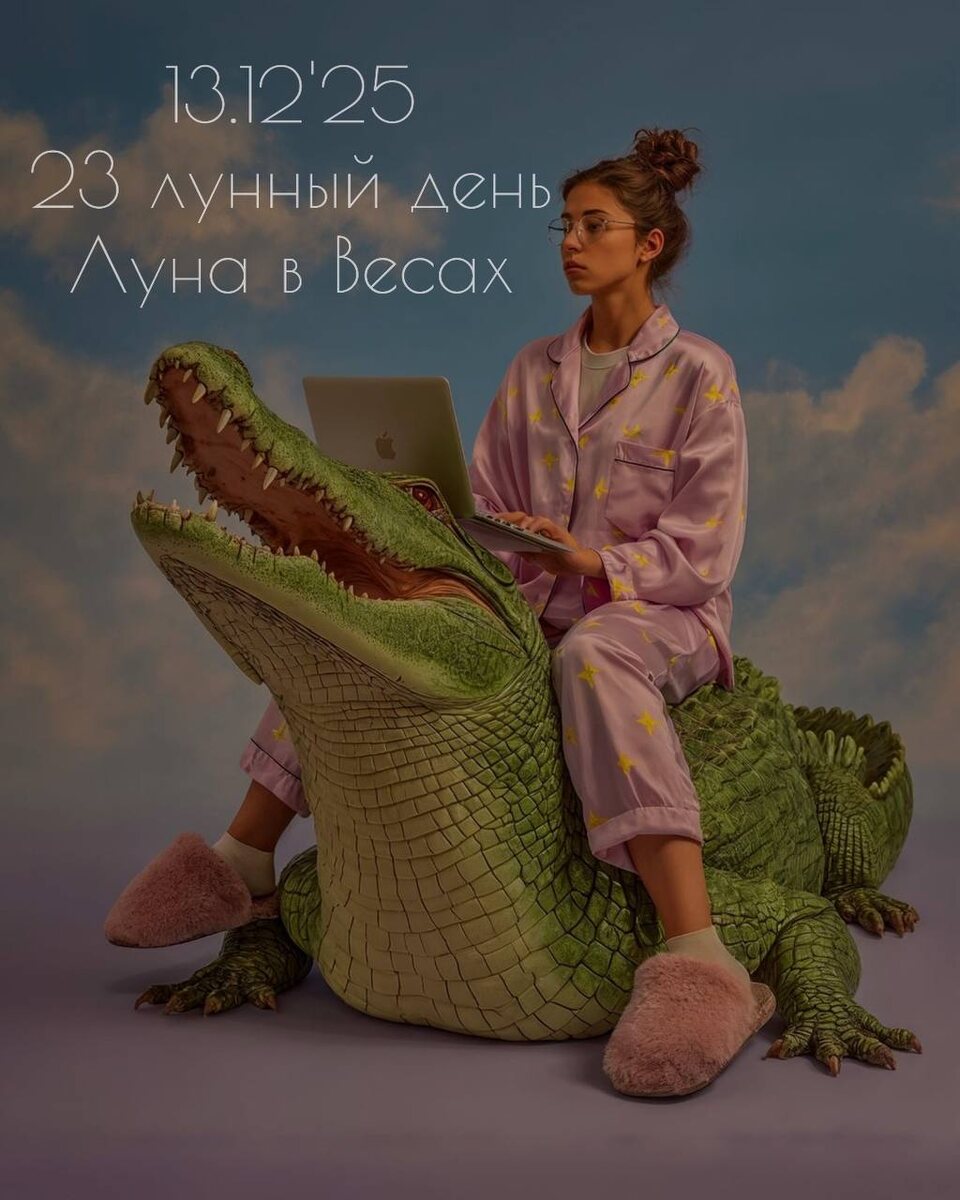 13.12'25 23‑й лунный день Луна 🌙в Весах♎️ Время подведения итогов и мудрого завершения начатого. Символ дня: Макара, загадочное существо, наполовину рыба, наполовину крокодил, напоминает: чтобы двигаться дальше, важно отпустить отжившее, признать ошибки и провести «ревизию» своих дел. Луна🌙 находится в знаке Весов♎️, добавляя в атмосферу стремление к гармонии и балансу. С одной стороны, это помогает налаживать контакты, находить общий язык с окружающими и создавать приятное впечатление. С другой, делает нас чуть менее решительными, склонными пересматривать принятые решения. День неоднозначный. Атмосфера напряжённая, люди легко вспыхивают, ищут скрытый смысл в словах и готовы спорить даже по мелочам. Поэтому важно держать эмоции под контролем, говорить прямо и не втягиваться в пустые разговоры и сплетни. Даже те, кого вы считали надёжными союзниками, сегодня могут повести себя неожиданно. Лучше не строить на них серьёзных планов. В личных отношениях осторожность тоже не помешает.