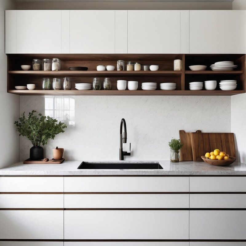 Открытые полки становятся прекрасной альтернативой верхним шкафам, позволяя организовать пространство и при этом демонстрировать красивую посуду и аксессуары. Они создают ощущение легкости и открытости, а также упрощают доступ к необходимым предметам. Разнообразие материалов и стилей открытых полок позволяет легко вписать их в любой интерьер, добавляя индивидуальности и эстетики. Правильное размещение полок обеспечивает не только функциональность, но и визуальный интерес.
