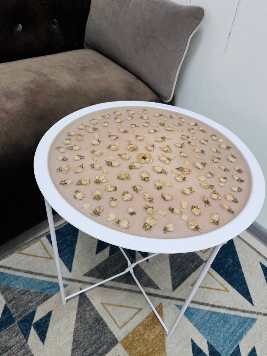 🌹 Впервые делала такую заливку в рамках мастер-класса 👍🏻 Делали его 3 недели 🔥 Потребовалось много слоев. Чтобы уложить все бутончики. И сделать качественно. 🫰 Ушло более 3кг смолы. 🫣 Столик изготавливали на индивидуальном занятии. Предназначен он для подарка на юбилей, дорогому человеку. Вот это подарок 🎁 Память на века. Да еще и своими руками 🙏🏻