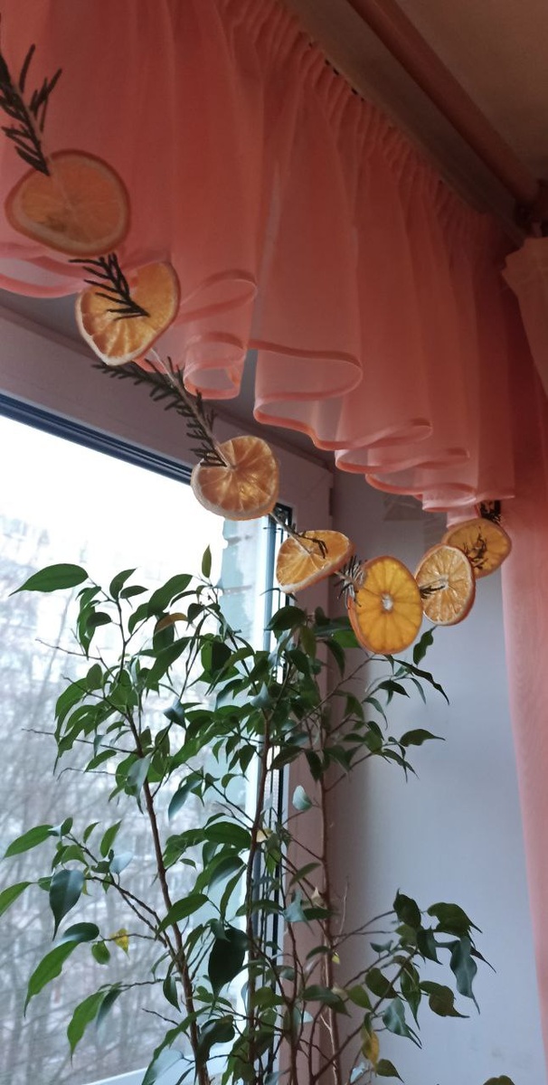 Гирлянда из засушенных долек апельсина и маленьких веточек туи🎅🌲