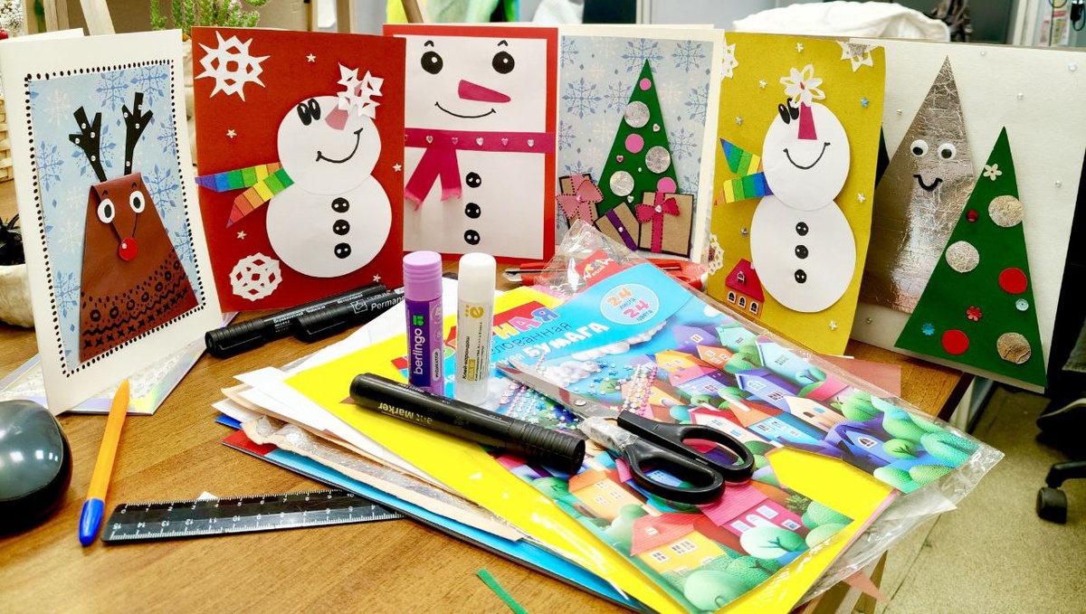 У меня получилось пока 10 открыточек вот в таком наивном стиле))😊🙃 Мне кажется, они забавные, и вызовут улыбки у тех, кто их получит, а это значит, что цель передать кусочек тепла будет достигнута!! 🤗❤️🎄