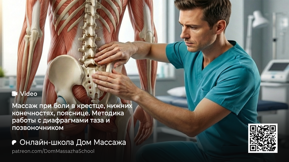 🔥 ЭКСКЛЮЗИВНЫЙ КОНТЕНТ ПО МАССАЖУ Боль в пояснично-крестцовой зоне редко является локальной проблемой. Острая боль в крестце, иррадиация по ходу седалищного нерва, скованность, невозможность сидеть или ходить без дискомфорта — это следствие глубинных дисфункций, а не самостоятельное заболевание. Данный подход основан на устранении первопричин болевого синдрома через разблокировку тазовой и грудобрюшной диафрагм и последующую полную мобилизацию позвоночника. Эти структуры функционируют как последовательные насосы. При их нарушении блокируется венозный отток, страдает иннервация и формируется хронический застой, который и поддерживает боль. Работа всегда начинается с точной пальпаторной диагностики. Первично оценивается состояние тазовой диафрагмы — ключевой структуры всего опорно-двигательного аппарата. В норме ткани податливы и свободно «проваливаются» внутрь. Ригидность и отсутствие подвижности указывают на выраженный блок, нарушающий кровообращение и нервную проводимость. Далее оце