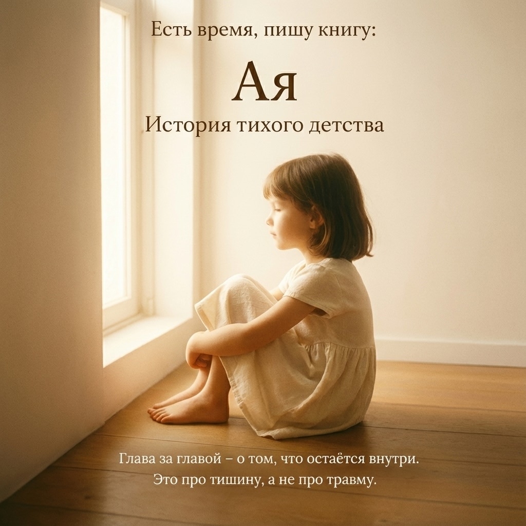 Я начала писать книгу про девочку Ая. Эта книга про детство, которое не ушло, а просто выросло внутри. Ая — героиня этой книги Ае около 45 лет.