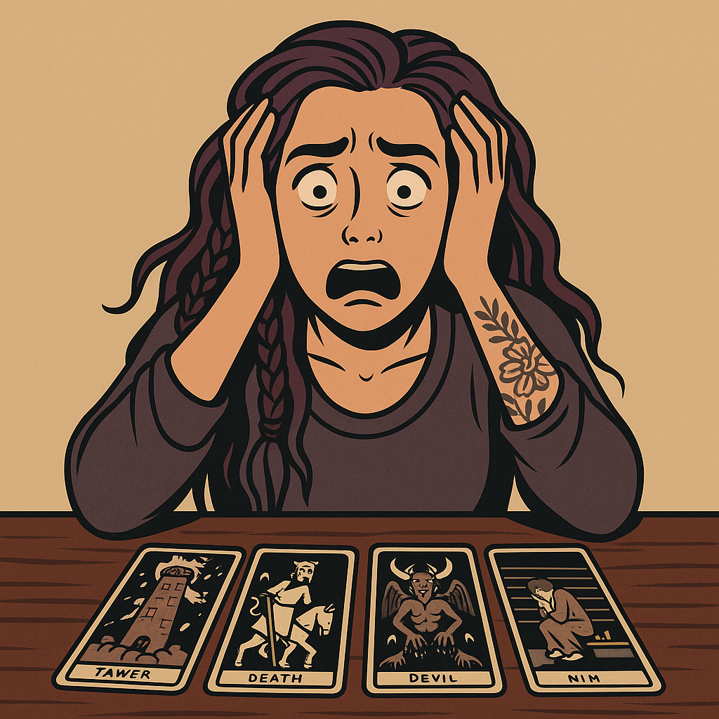 — «Что будет, если…?» Такие вопросы автоматически вытаскивают крайние сценарии. Если вопрос был размытый - расклад почти всегда выглядит тревожно. Одна карта никогда не читается отдельно. Башня без контекста - страшно.