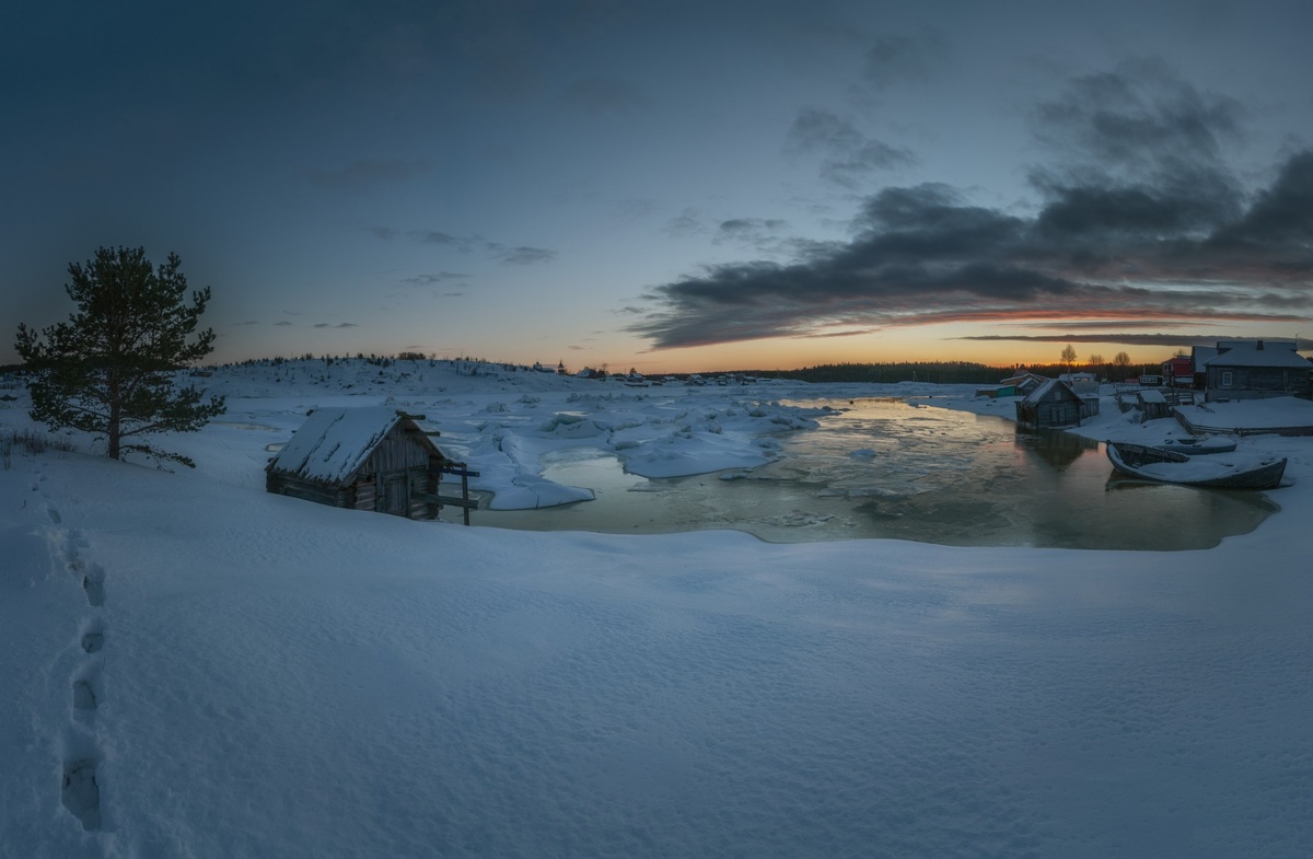 Очарование русского севера. Настоящее родное провинциальное. С теплом на душе вспоминаю поездку на Кольский полуостров и намерен побывать в холодных краях ещё не раз. Мощная там энергия, бескрайнее умиротворение и спокойствие... а за кадром 6 фотографов на снегоступах и по пояс в снегу делят локацию для съёмки ) Из неизданного #Ковда #СелоКовда #Мурманскаяобласть #Заполярье #СеверныйПейзаж