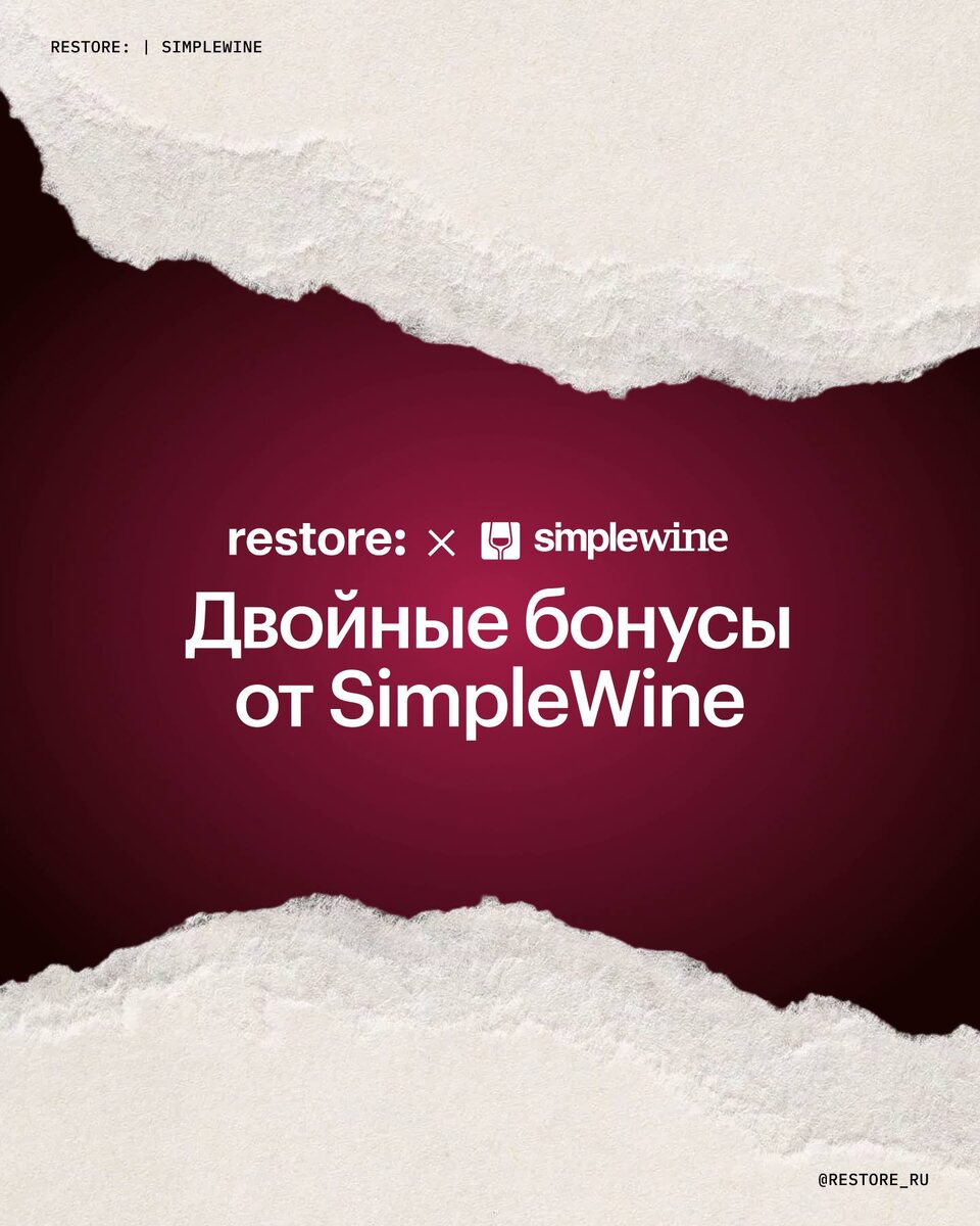 Покупка в restore: в декабре может закончиться не только новой техникой 🍷 С 4 по 17 декабря вместе с каждой покупкой в магазине вы получаете промокод на бонусы в SimpleWine — он появится на чеке сразу после оплаты. Достаточно загрузить его в Telegram-бот @sw_loyalty_bot и пройти регистрацию, чтобы получить статус White и бонусные баллы на виртуальную карту. Потратить их можно в винотеках SimpleWine или на сайте при выборе самовывоза. Подробнее об условиях акции, участвующих магазинах и городах — на сайте.
