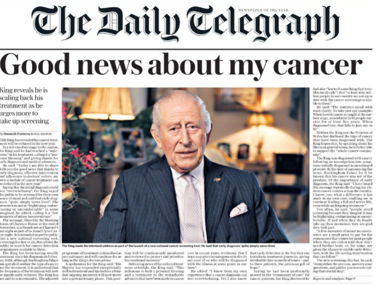 Накануне король Карл III выступил с личным сообщением, в котором поддержал сервис Screening Checker, который был запущен в начале декабря. Он позволяет при помощи онлайн-анкетирования выяснить, есть ли необходимость пройти скрининг на ряд видов ра.ка и при необходимости получить к нему доступ. Таким образом обеспечивается ранняя диагностика. Рассказал король и о том, как проходит его лечение и как он себя чувствует. Британские СМИ уже хором назвали это "его лучшим подарком к Рождеству", поскольку Его Величество сообщил: "Сегодня я могу поделиться с вами хорошей новостью: благодаря ранней диагностике, эффективному лечению и соблюдению предписаний врачей, мой собственный график лечения может быть сокращен в новом году. Это достижение является как личным благословением, так и свидетельством замечательных успехов, достигнутых в лечении рака за последние годы; свидетельством, которое, я надеюсь, может воодушевить те 50% из нас, у кого в какой-то момент может быть диагностировано это забол