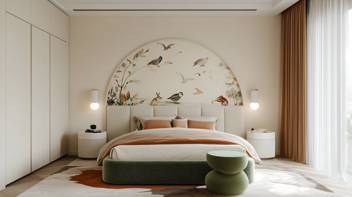 Акценты важны. Подсветка картины, ниши, текстильной панели — добавляет глубины. Можно использовать встроенные LED-ленты в плинтус или под изголовье — эффект парящей кровати работает даже в маленькой комнате.