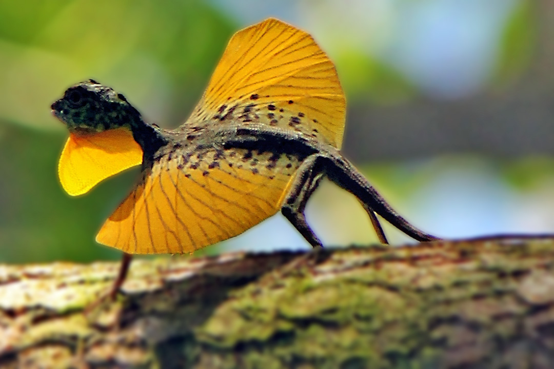 Привет, мои дорогие любители необычной земной фауны, сегодня я возьму тебя за руку и осторожно подведу к мысли, которая звучит как провокация: драконы на Земле существуют, и это не поэтическая вольность, а сухая биология. Представьте себе существо, которое не прячется в легендах и не спит в пещере на горе из золота, а живёт прямо сейчас, в кронах тропических деревьев, мелькает тенью между стволами и делает вид, что его здесь нет — и, честно говоря, у него это отлично получается. Знакомьтесь: летучие драконы — род Draco, и тут, думаю, ты уже улыбаешься, потому что перевод очевиден и не требует подсказок 😉. Никаких поэтических вольностей и натяжек — перед нами вполне официальный латинский «дракон», закреплённый в строгой зоологической номенклатуре и прекрасно себя в ней чувствующий. Обитают эти драконы в далёких и душных джунглях Индии, Юго-Восточной Азии, Индонезии и Филиппин, где зелень наслаивается на зелень, а пространство делится не по земле, а по высоте, и я не устану повторять те