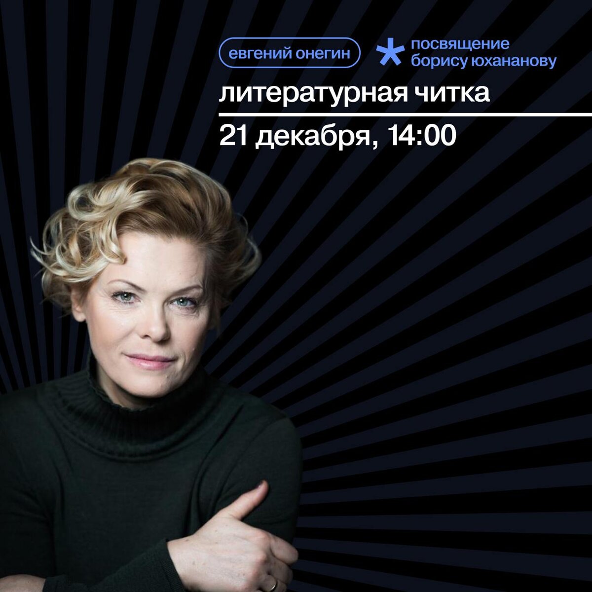 Медленное чтение романа «Евгений Онегин». Посвящение Борису Юхананову Полное чтение «Онегина» продолжается почти шесть часов. И все эти шесть часов актриса пребывает наедине с текстом. Не прикрытая ничем — ни декорацией, ни видео, ни «общением с партнером». Единственный партнер — текст романа. Вне режиссерской интерпретации, вне той или иной «трактовки». Единственная задача — дать пушкинскому тексту проявиться. Прозвучать именно так как он написан. Интерпретация — дело зрителя То, что в Москве этот проект будет представлен на сцене Электротеатра — не случайность. Одной из главных идей Бориса Юхананова была идея «театра полноты». Но полнота — это не только полнота театра в смысле присутствия всех театральных составляющих: музыки, света, движения и т.д. Но и полнота исходного текста, ни одна из частей которого не приносится в жертву обстоятельствам, — Игорь Вдовенко, кандидат искусствоведения. Режиссер: Алексей Янковский Исполнительница: Татьяна Мариничева 21 декабря в 14:00⭐️Бесплат