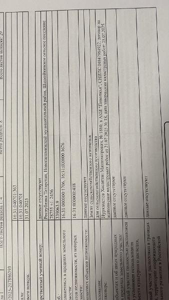 Название: - площадью 78755 кв.м расположенный по адресу: РТ, Новошешминский муниципальный район, Шахмайкинское сельское поселение, кадастровый номер земельного участка 16:31:040701:363, арендная плата за земельный участок в год – 1017,20 рублей Канал: Госземля Республика Татарстан Область: Респ Татарстан Район: м.р-н Новошешминский Населенный пункт: с.п. Шахмайкинское, с Шахмайкино, ул Молодежная Локация: Смотреть на карте ВРИ: Сельскохозяйственное использование Кадастровый номер: 16:31:040701:363 Кадастровая стоимость: - Вид сделки: Аренда Площадь: 78755 м² Начальная цена: - руб. Дата завершения: 14.01.2026 Подробнее: ГИС ТОРГИ #госземля #земляотгосударства #земля #земельныйучасток #земельныеторги #торги #аукцион #арендаземли #аренда #республикататарстан
