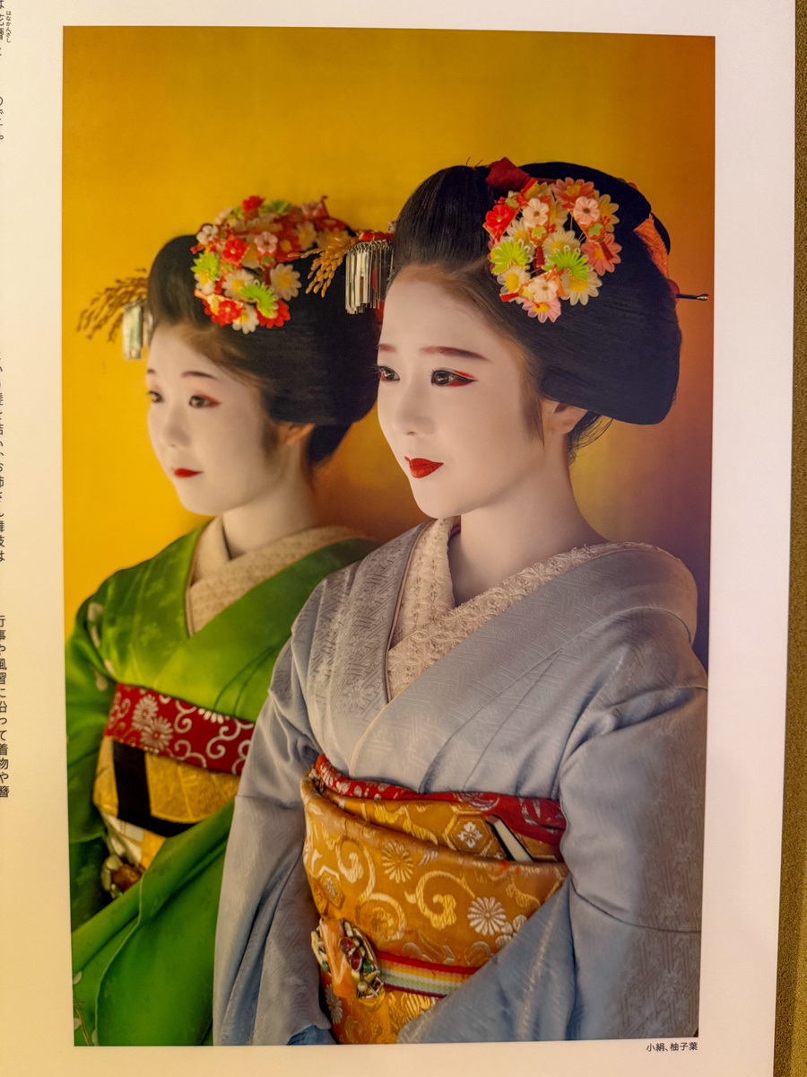 Чтобы чуть ближе понять эту часть культуры, мы зашли в Gion Kagai Art Museum. Этот небольшой, но очень атмосферный музей посвящен искусству и быту квартала Гион в Киото. Там, изучая экспонаты, можно четко увидеть разницу между гейко и майко. Майко, обычно подросток, носит яркое кимоно с длинными рукавами, сложную прическу с собственными волосами и обильные украшения-кандзаси. Её макияж также более яркий. Гейко же, уже совершенная артистка, одевается сдержаннее: её кимоно с более короткими рукавами, парик вместо сложной укладки, макияж ск