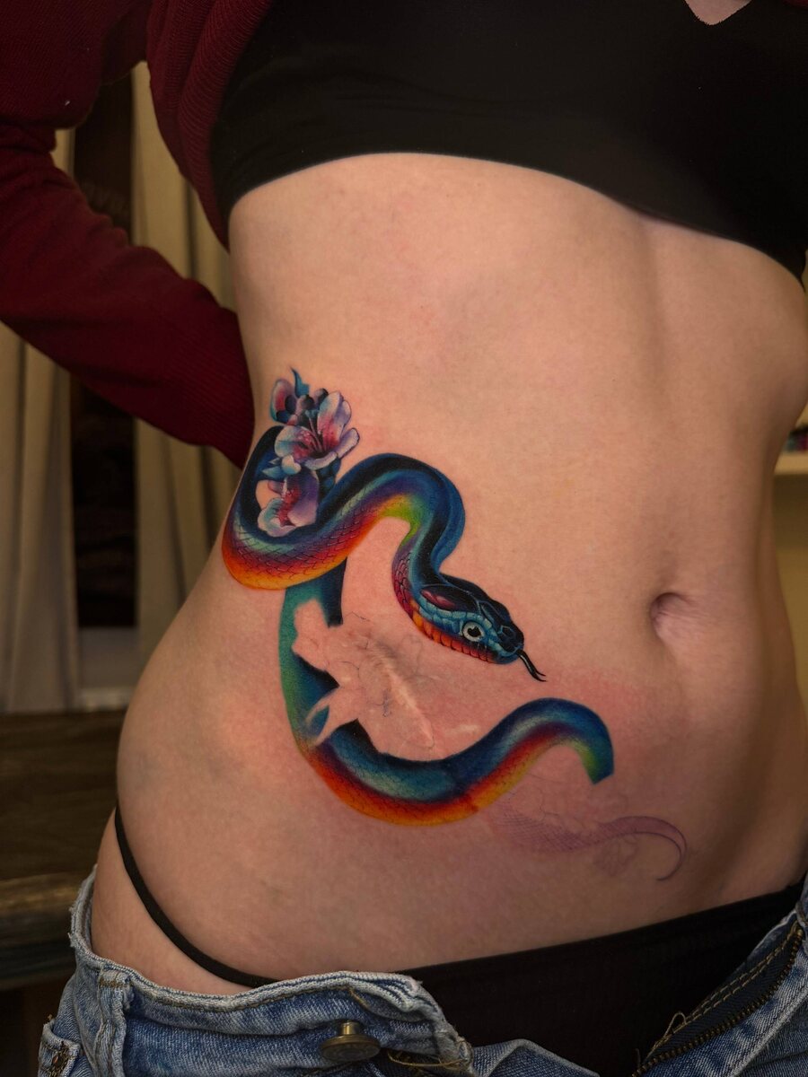 Профессиональный подход к сложным проектам — забота о результате и клиенте. ✨ Недавно стартовал особенный проект — татуировка, которая не только украшает, но и перекрывает шрам. Это всегда вызов для мастера и испытание для клиента. Почему мы решили разбить работу на два сеанса? 1. Место сложное и чувствительное. Работа ведётся на участке с особой кожей, где болезненность значительно выше. Когда организм к вечеру устает, терпеть боль становится в разы тяжелее. 2. Детали и цвет. Для такой кропотливой и цветной работы нужна ювелирная точность. Уставшие глаза мастера — враг идеальных линий и плавных переходов. Разделив процесс, мы даём возможность: ✔️ Клиенту — перетерпеть боль эффективно, не истощая ресурсы организма за один раз. ✔️ Мастеру — сохранить остроту зрения, твердость руки и концентрацию на каждом миллиметре. Так мы гарантируем, что в итоге получится именно тот качественный и красивый результат, ради которого всё затевалось. Первая сессия прошла отлично, ждём вторую для фин