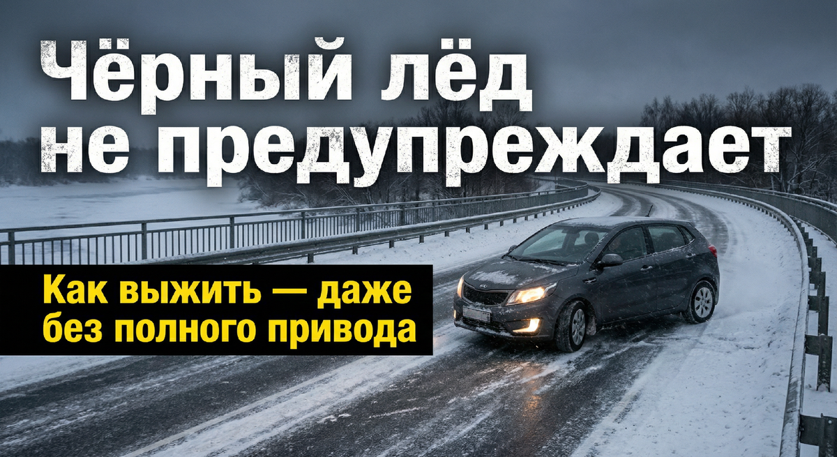 “Чёрный лёд” — не миф. Это невидимая плёнка воды под -2°C, на которой любая машина теряет сцепление.