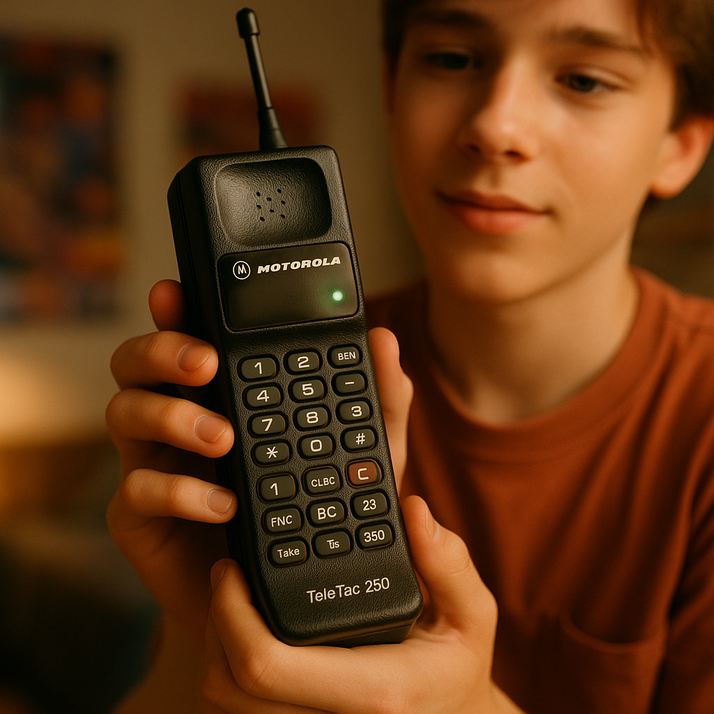 Помните времена, когда мобильник весил как мини‑гантель, а антенна могла проткнуть облако? Я до сих пор храню в памяти свой первый «кирпич» — Motorola TeleTac 250 — и историю о том, как он превратил меня из робкого подростка в «непобедимого» героя двора. Если вы тоже ностальгируете по эпохе, когда телефон был не просто связью, а статусом, читайте дальше: будет смешно, трогательно и очень узнаваемо. Акт I. «Это не телефон, это легенда» 1998 год. Мне 14. В руках — чудо техники: Motorola с выдвижной антенной, зелёным индикатором и весом, достойным чемпионского пояса. — Это же целая мини‑станция! — восхищался я, взвешивая аппарат на ладони.