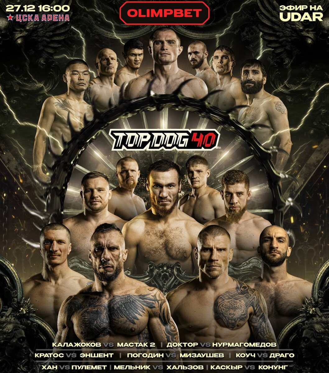 📅🥊Осталось ровно 2 НЕДЕЛИ до невероятного TOP DOG 40! 👊Этот турнир Регбиста, Войса и их мощной команды навсегда войдет в историю. Рекордные 19 поединков на кулаках в карде, мощнейшие имена, огромная арена и фирменная, непередаваемая атмосфера. ❓Какой бой ждете больше всего, фанаты TOP DOG? 👍Поддержи наш канал cвоим голосом 📺Смотрим бои TOP DOG 40 в прямом эфире ⚡ @teleudar