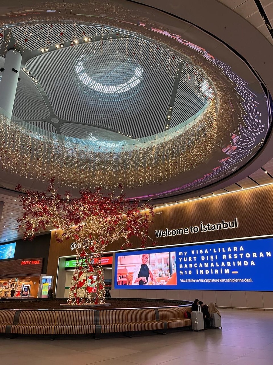 У многих возникает вопрос: а что делать столько времени в аэропорту. До города ехать 1,5 часа, на стыковочный рейс надо быть минимум за 2 часа, поэтому поездка в город отпадает. Я предлагаю остаться в аэропорту. Полное название нового аэропорта: Международный аэропорт Стамбула IGA (тур. İstanbul Havalimanı). Это один из самых больших аэропортов мира и самый удобных. Открыт 29 октября 2018 года.