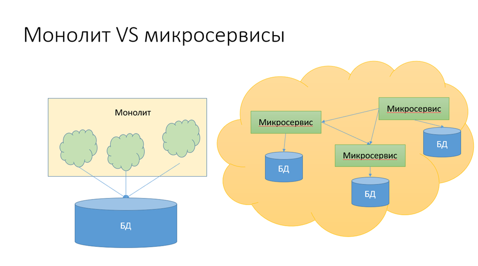- Выбирайте монолит, если вы начинаете новый проект с небольшой командой, неясными требованиями и необходимостью быстрого старта.