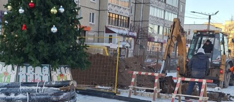 Рабочие вырыли котлован у новогодней елки в Петрозаводске