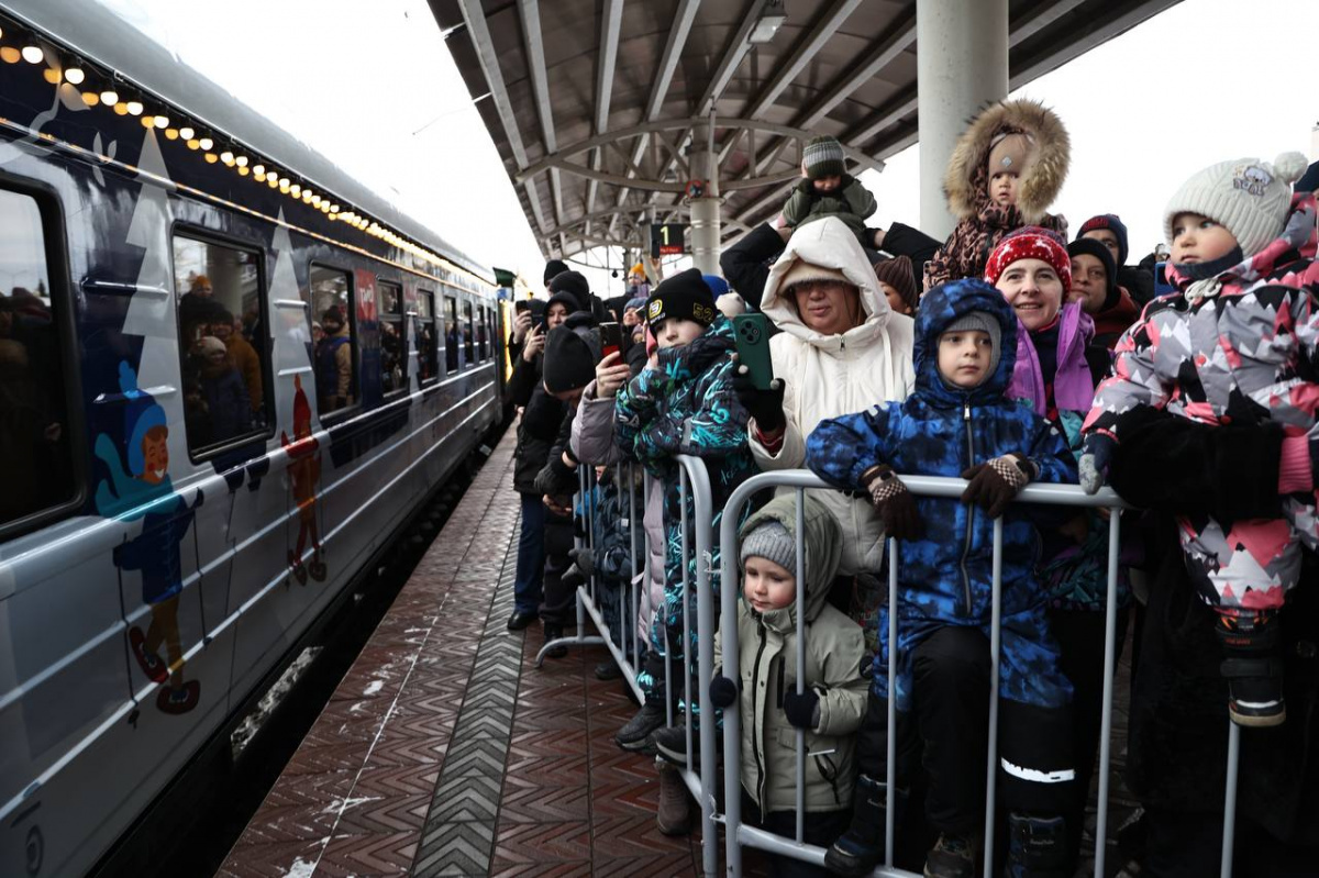 Поезд Деда Мороза в субботу, 13 декабря, сделал остановку в Челябинске. Состав прибыл утром и будет находиться на вокзале до позднего вечера, после чего отправится дальше по общероссийскому маршруту. Весь день на перроне и в здании вокзала проходит праздничная программа для детей и взрослых. Сразу после прибытия Дед Мороз и Снегурочка вышли к гостям, чтобы поприветствовать детей и принять письма с новогодними желаниями. На перроне главных персонажей Нового года встречали сотни челябинцев.
