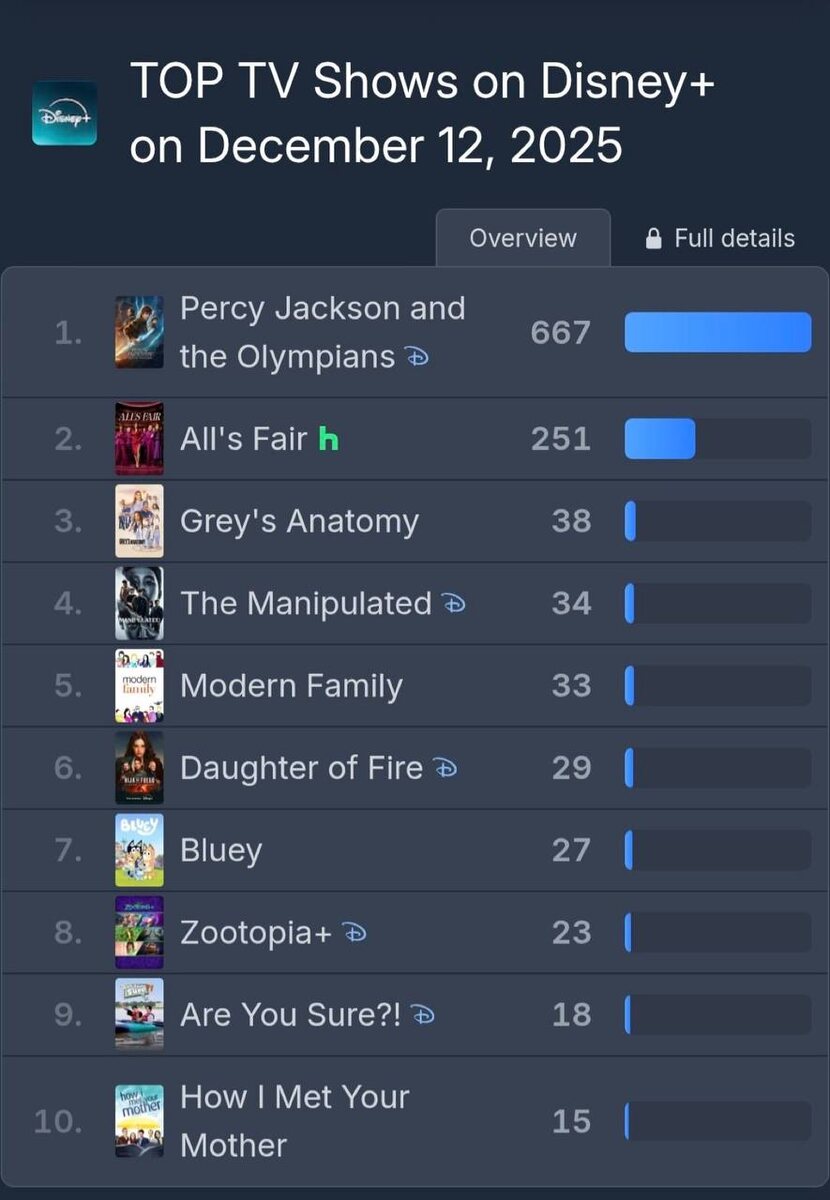 🍒 "Are you sure?!" заняло 9-ое место в глобальном топе телешоу на Disney+ 12 декабря