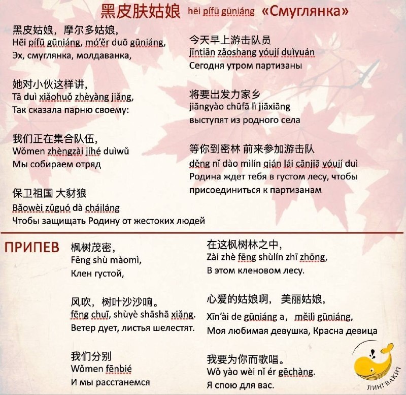 Текст Смуглянки на Китайском (Китайский текст Смуглянка)