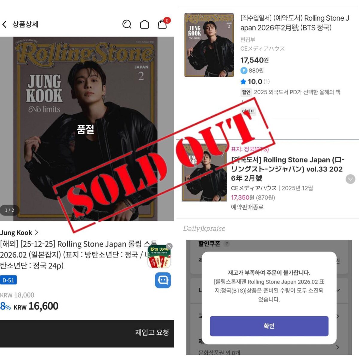 🍒 Обложка Чонгука для Rolling Stone Japan уже распродана в крупных розничных сетях, таких как Yes24, Aladin, Kyobo и Ketapo, — ещё до официального релиза. cr._dailyjkpraise_ #JK @kumihobts