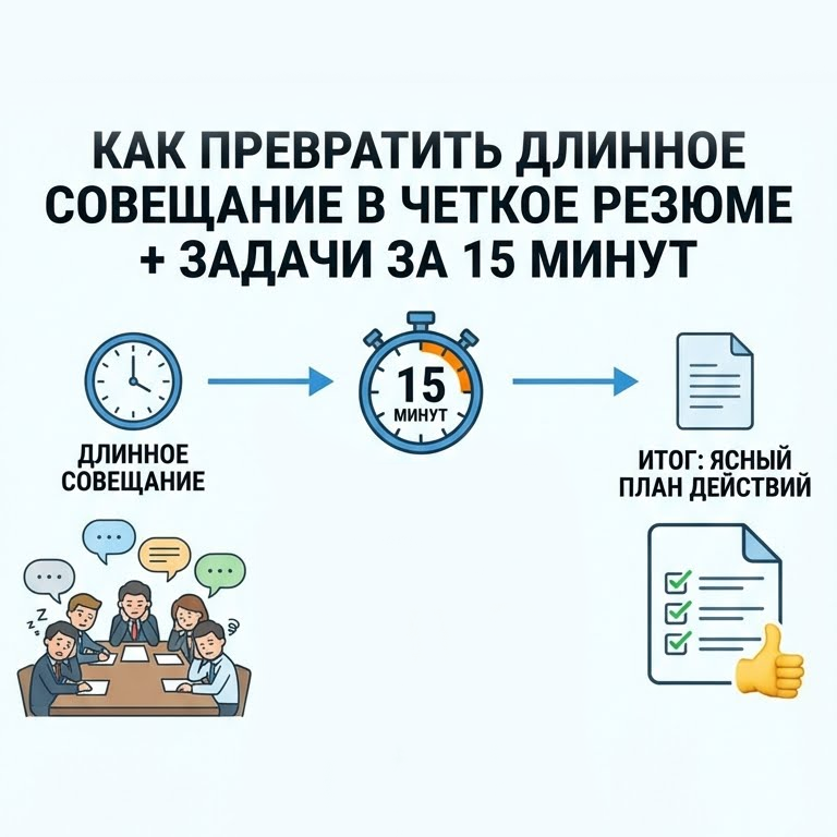 Через 10–15 минут после любой встречи у тебя не «час болтовни», а короткий конспект, список задач с ответственными и ясное понимание, что делать дальше.