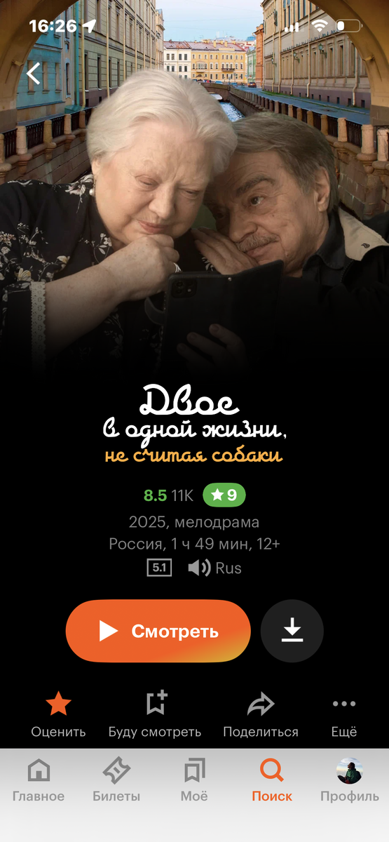 Вчера было много работы на кухне, той которая позволяет что-то смотреть фоном. В планах по фильмам ничего не было, поэтому открыла кинопоиск и тут сразу рекомендация которой доселе не было. Фильм "Двое в одной жизни, не считая собаки" с рейтингом 8,5 и участием в главных ролях Светланы Крючковой и Александра Адабашьяна - дуэт. Не могу сказать что это мои любимые актеры, но они из той эпохи, когда и фильмы были другие, и жизнь. Эпоха моей молодости. Сразу всплыл Адабашьян на каблуках из Вокзала для двоих и рыжая Крючкова из Большой Перемены с моим любимым Леоновым). Посмотрела как говорится на одном дыхании. Потрясающий интеллигентный юмор, уютная старость, реалии нашей жизни. Что не фраза , то в десяточку. И все так по доброму, и честно. Не буду рассказывать подробности, но там есть момент когда звучит музыка, которой потрясена юная героиня фильма. Классика. Опера. И какая-то знакомая незнакомая, до мурашек. Я ее сохранила в плейлист и слушала подряд несколько раз. По обложке на ян