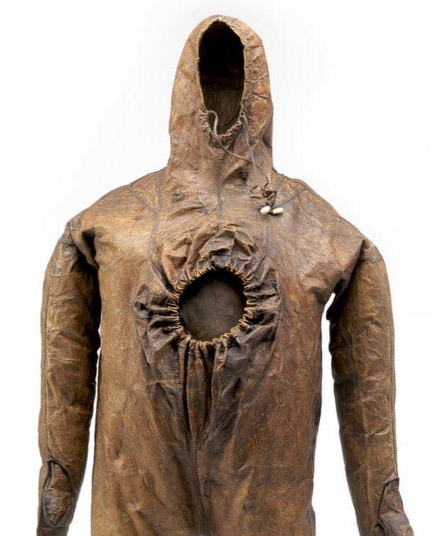 Гренландия: начало истории гидрокостюмов Этот жутковатый на вид коричневый кожаный комбинезон на самом деле — настоящий китобойный костюм инуитов Гренландии XIX века (до 1834 года), полностью сшитый из тюленьей кожи. Комбез прошит сухожилиями, а большая дыра на груди - вход. Нужно было залезть внутрь ногами вперед, натянуть его, как самый крутой гидрокостюм в мире, а затем туго затянуть шнурок, чтобы вода не попала внутрь, когда охотник находится в каяке на охоте на китов или тюленей. По сути, это один из первых оригинальных сухих гидрокостюмов, изобретенных людьми, которым приходилось выживать в океане при температуре −40 °C без мембраны Gore-Tex. #Гренландия #Китобойный #Инуит #Тюлени #Рыбалка #Гидрокостюм #УжасыНашегоГородка #МодныеТренды ✩RUTUBE | РУТЬЮБ ► https://rutube.ru/channel/992227/