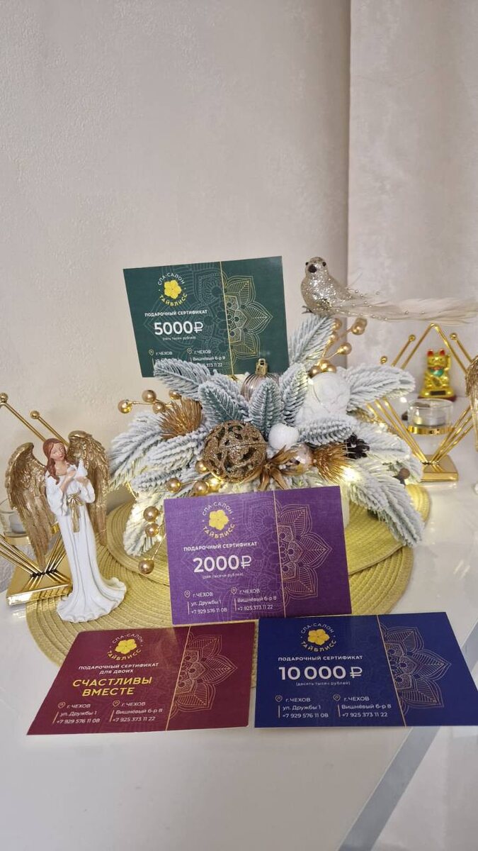 Приближается самый волшебный праздник - Новый год! Это время, когда хочется окружить близких заботой и теплом🎄 Специальные акции к Новому году: 🎁 Акция «3+1» Покупаете 3 сертификата на массаж — получаете 4-й в подарок по минимальной стоимости из выбранный! Сертификаты на сумму :2000₽,3000₽,5000₽,7000₽,10.000₽ ✨ Важно: Акция «3+1» доступна для всех получателей. Приобрести 4 сертификата по этой акции для одного человека можно неограниченное количество. По сертификату можно будет пойти самому или подарить всем тем, кого хотите порадовать 🎁 Дарите заботу и расслабление с выгодой! 📍 Тайблисс на Вишневом б-ре, д.8 📞 Телефон:+79253731122 🏢 thaibliss-spa.ru/ 🌸 vk.com/clubthaibliss 🎁 Мы понимаем, как важно экономить время в предновогодней суете. Поэтому предлагаем оформление сертификата в электронном формате! «Тайблисс » - место, где рождаются самые тёплые подарки!