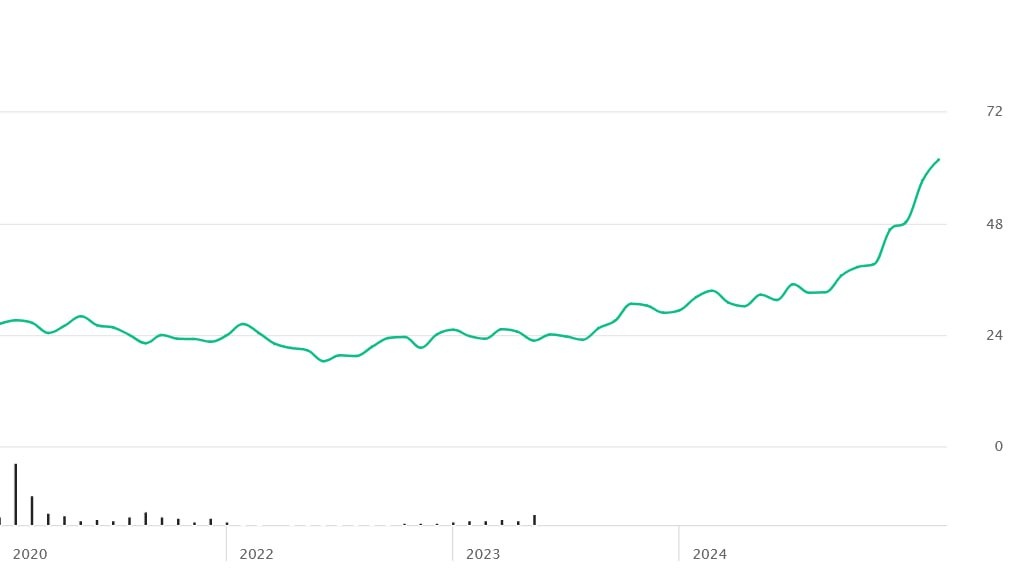 Биржевая цена на серебро в пятницу 12 декабря 2025 года обновила рекордное значение, впервые в истории поднявшись выше отметки в 65 долларов