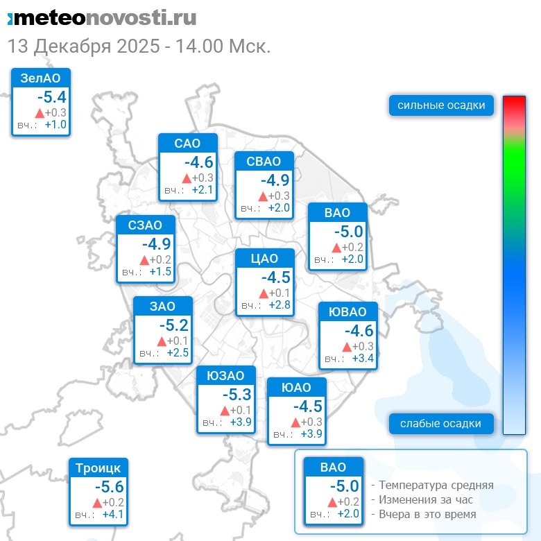 В 14:00 в Москве было от -6°C до -4°C, средняя температура -4.8°C #погода #Москва #зима #температура #13декабря #суббота