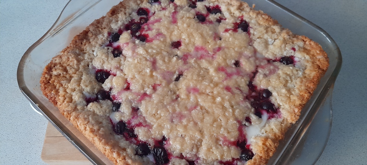На дворе декабрь, а у меня в морозильнике черная смородина заморожена. Буду делать пирог для приятного зимнего чаепития. Способ приготовления В начале в миску на терке тру пачку сливочного масла 72% (180-200 грамм) К маслу добавляю пять столовых ложек сахарного песка и полтора стакана просеянной муки Туда же разбиваю два яйца и насыпаю небольшую щепотку соли Добавляю один пакетик разрыхлителя и одну столовую ложку любого майонеза Всё перемешиваю руками недолго и готовое песочное тесто делю на две части. Одну часть убираю в морозильник, а другую в холодильник на 15-20 минут Достаю тесто из холодильника и укладываю его на промазанную сливочным маслом огнеупорную стеклянную форму Делаю заливку из одной баночки сметаны 15 % и пяти столовых ложек сахарного песка с одним пакетиком сахарного ванилина и двумя чайными ложками крахмала. Я перемешиваю все вилочкой до растворения сахарного песка и выливаю на тесто сметанную заливку Достаю замороженную черную смородину из морозильника и выклады