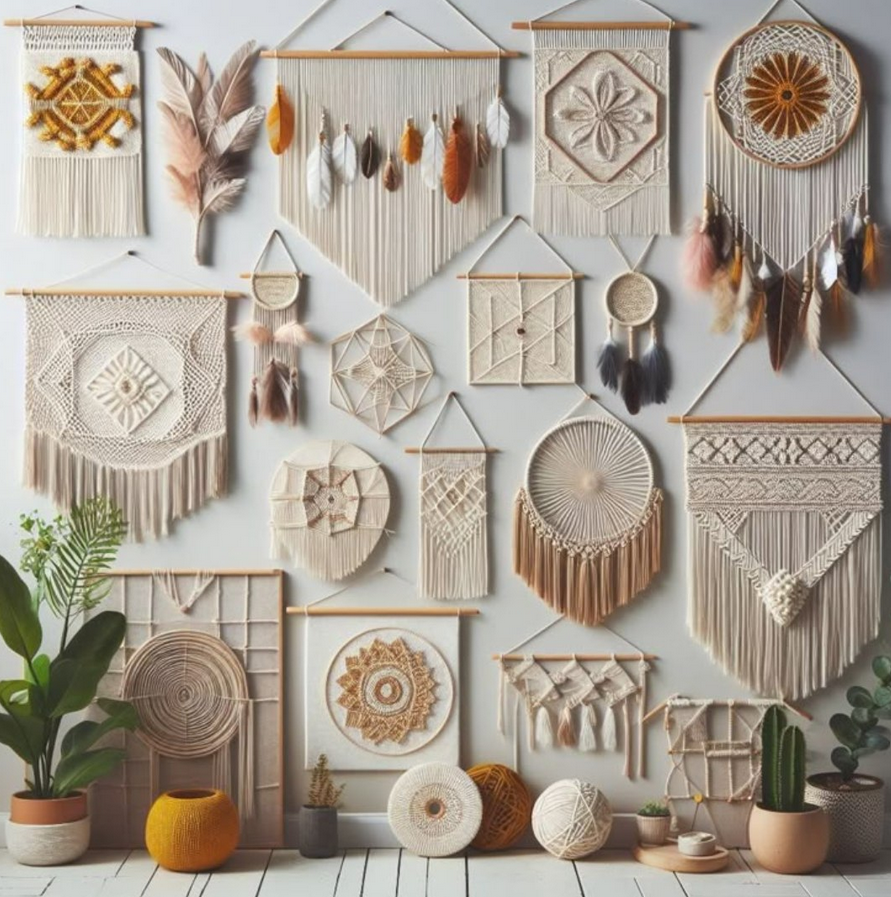 Все наши статьи про макраме здесь. Смотрите уроки по плетению квадратных узлов. Начало этого мастер-класса можно найти здесь. Сегодня мы освоим технику создания изящного плетёного панно — без сложных монтажных шнуров и с минимумом материалов. Результат порадует своей лаконичностью и подойдёт для декора интерьера. Что понадобится Основные материалы: шнур цвета слоновой кости — 60 см (длина одной заготовки) 6 штук; светло‑голубой шнур — 60 см (длина одной заготовки) 4 штуки. Вспомогательные инструменты: доска для плетения (или плотная подложка); портновские булавки (не менее 10 шт.); пинцет или штопальная игла (для финальной обработки). Альтернативы материалам : в качестве подложки — пенопласт, плотный картон или деревянная доска. Пошаговый процесс Подготовка шнуров сложите каждый шнур пополам — так вы получите рабочую петлю; закрепите центр петли булавкой на доске; расположите булавки в горизонтальной линии — две булавки образуют одну колонку узлов. Формирование колонок подготовьте 5
