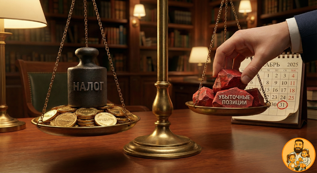 Конец года — лучшее время не только подводить итоги по портфелю, но и заранее подумать о налогах. Многие инвесторы вспоминают о них уже постфактум, хотя часть НДФЛ можно легально сократить или отложить. Делюсь простым и эффективным инструментом. ❗️ В чем суть Налоговая база (сумма, с которой берут 13%) — это ваша чистая прибыль. Если у вас есть убыточные позиции, их можно зафиксировать, чтобы уменьшить итоговый налог. Проще говоря: 👉 прибыль минус убыток = сумма, с которой считается налог. 📊 Пример на цифрах 1️⃣ Успех: Вы продали акции Компании А и заработали 100 000 ₽. С этой суммы брокер удержит налог 13 000 ₽. 2️⃣ Просадка: У вас в портфеле висят акции Компании Б, которые упали в цене. Бумажный убыток по ним — 50 000 ₽.Ваши действия:Вы продаете убыточные акции Компании Б до конца года. Теперь для налоговой ваша общая прибыль за год: 100 000 - 50 000 = 50 000 ₽.Налог составит 13% от 50 000 ₽, то есть 6 500 ₽. 3️⃣ Итог: Вы сэкономили 6 500 ₽ живых денег. ❓ А если я хочу оставить эт