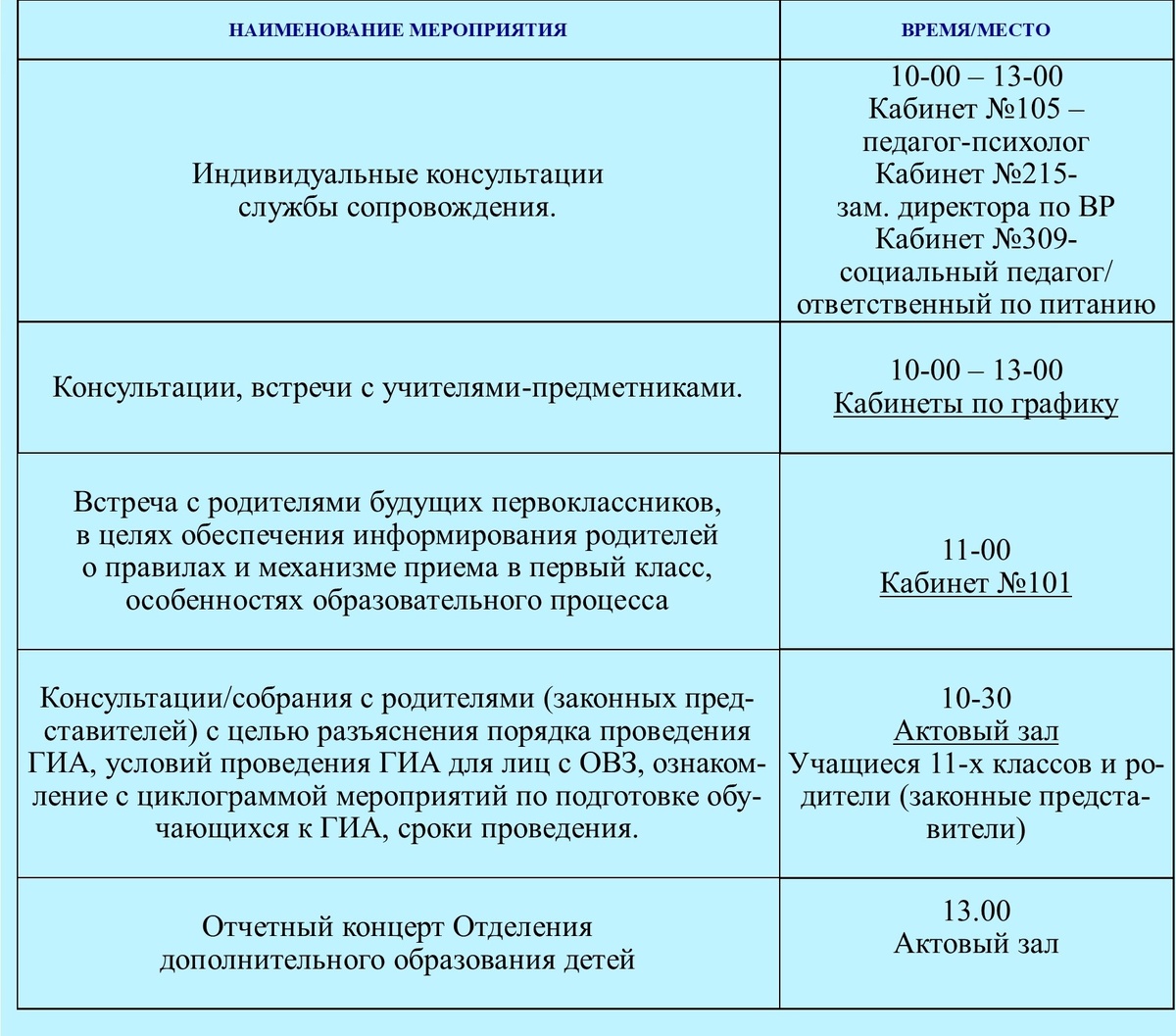 В эти дни родителям можно заходить в школу. Можно общаться с учителями-предметниками и тд.