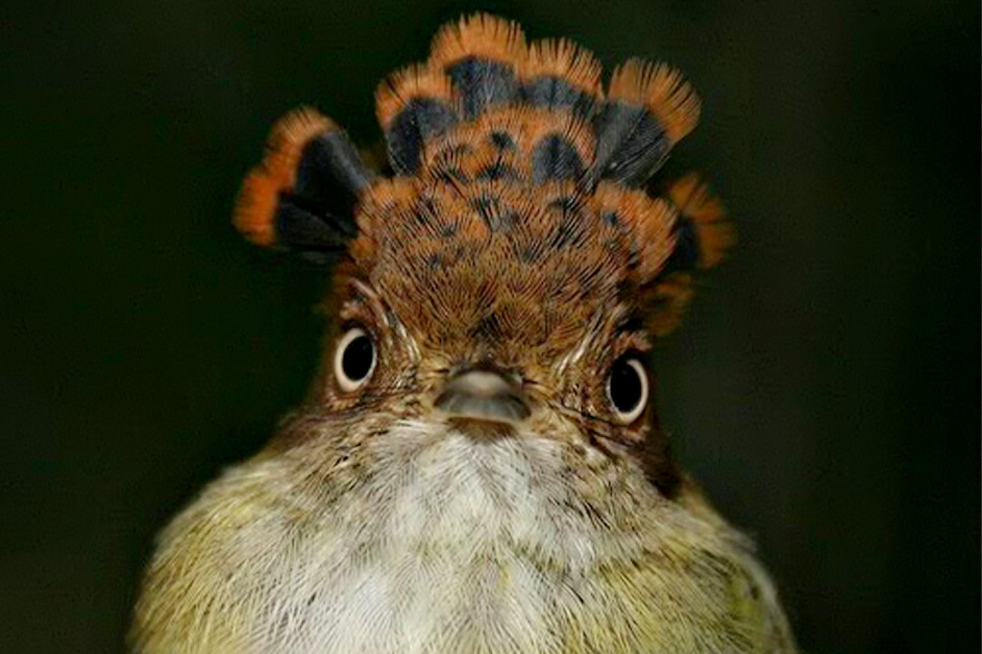 Привет, мои дорогие любители необычной земной фауны, сегодня я предлагаю вам познакомиться с птицей, чьё русское имя звучит так, будто его придумали на спор после третьей чашки кофе, и я сразу предупреждаю: без лёгкой музыкальной паузы тут не обойдётся. Представьте себе крошечное пернатое существо с вызывающе серьёзным выражением «лица» и причёской, которая словно требует отдельного стилиста, — честно говоря, глядя на него, я каждый раз ловлю себя на мысли, что где-то мы уже это видели, просто в гораздо более глянцевом варианте. Знакомьтесь: чешуехохлый тиранчик-гренадёр (Lophotriccus pileatus), птица, получившая в русском языке имя, которое звучит куда воинственнее, чем она сама, и явно родилось не из английского или латинского названия, а из свободной ассоциации с её эффектным хохолком — тем самым, что и запустил всю эту «гренадёрскую» историю. Обитает этот тиранчик в лесах Центральной и Южной Америки, где предпочитает держаться не под самым пологом крон, а в нижнем ярусе тропическог