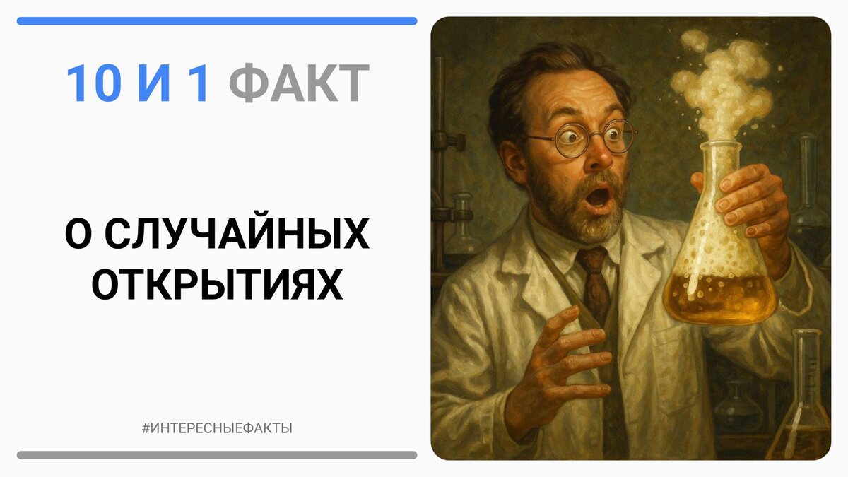 10 и 1 факт о случайных открытиях, которые стали продуктом Знаете ли вы,что клейкие стикеры появились случайно? У одного учёного был клей, который плохо держал - без практического применения. Другой сотрудник стал использовать его как временные закладки, и идея пошла в производство. Микроволновая печь возникла, когда инженер Перси Спенсер заметил, что шоколад в его кармане растаял рядом с магнетроном - это привело к идее готовить пищу микроволнами. Пенициллин открыт Александром Флемингом случайно - плесень уничтожила бактерии в чашке Петри, что положило начало антибиотикам. Viagra сначала тестировали как лекарство для сердца - "побочный эффект" дал новый рынок и продукт. Пластилин Play-Doh родился из состава для чистки обоев - когда спрос на чистильный состав упал, смесь превратилась в безопасную детскую игрушку. Velcro (липучка) появился после наблюдения за колючками, пристающими к одежде швейцарского инженера - он скопировал их принцип для застёжки «крючок-петля». Teflon обнар