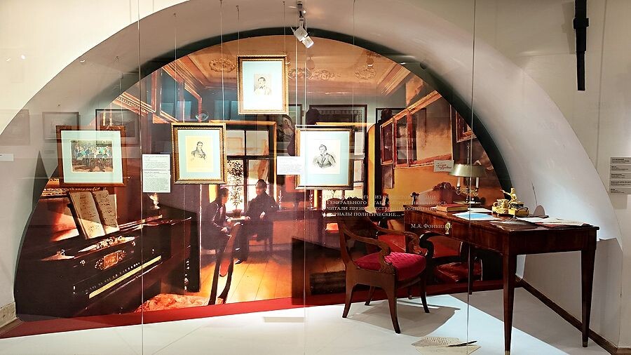На этот раз авторы выставки «Декабристы: люди и судьбы» удивили. Здесь почти нет «главного экспоната» музея, а именно самого Александра Сергеевича! Нет, конечно, повествование начинается аb ovo — с Лицея: литографии царскосельских пейзажей, портреты однокашников «номера четырнадцатого» — Пущина, Кюхельбекера, Вольховского...
