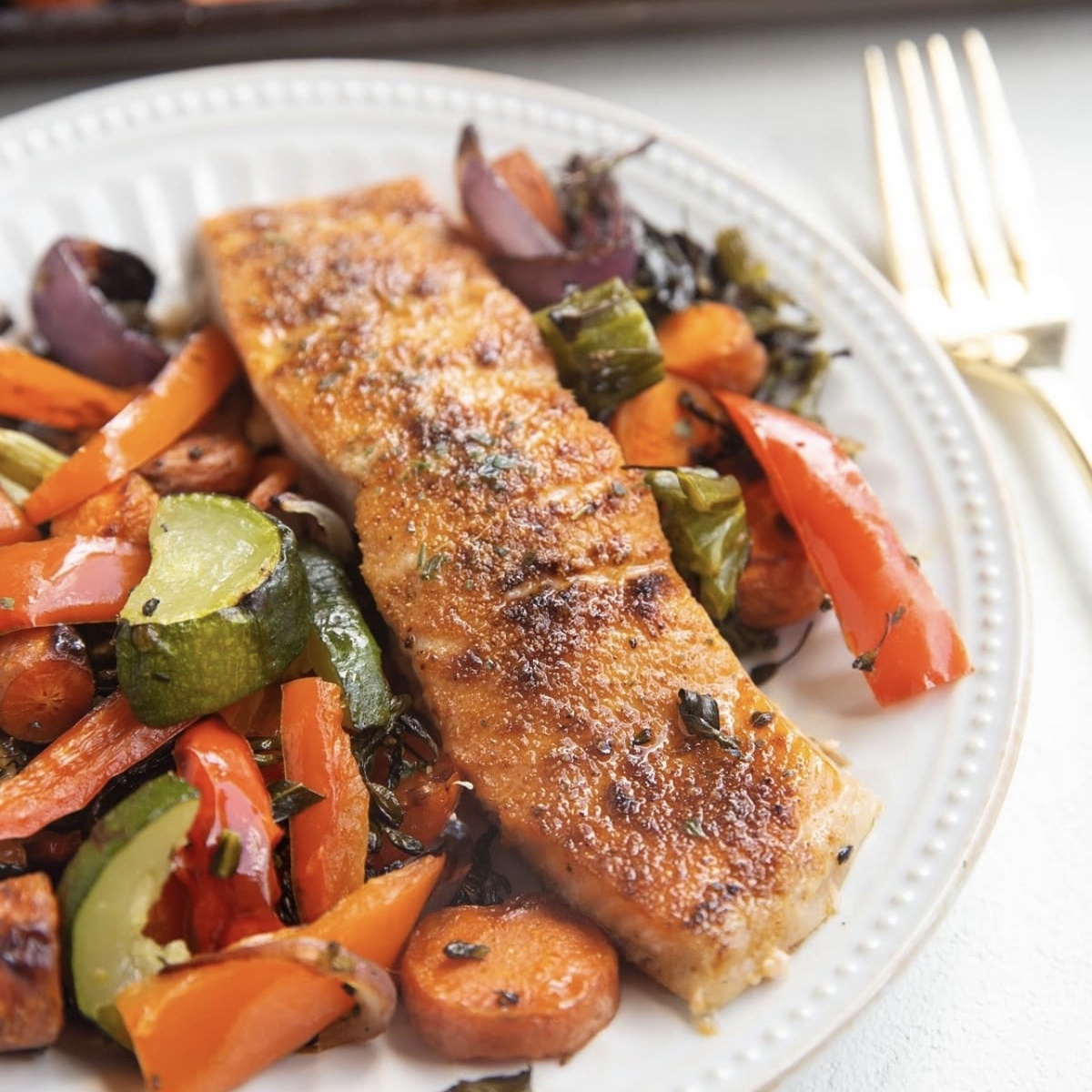 🐟Лосось с овощами в духовке — просто, полезно и очень вкусно